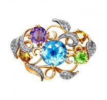 Золотая брошь с раухтопазом