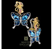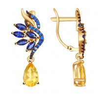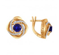 Золотые серьги с бриллиантами и сапфирами