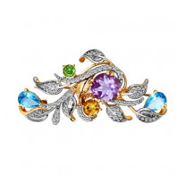 Золотая брошь с аметистами и родолитами