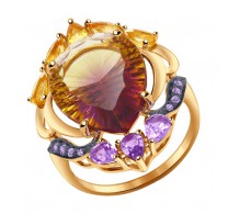 Золотое кольцо с полудрагоценными камнями