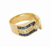 Золотое кольцо с сапфирами и бриллиантами